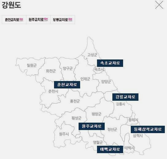 강원지역 선택